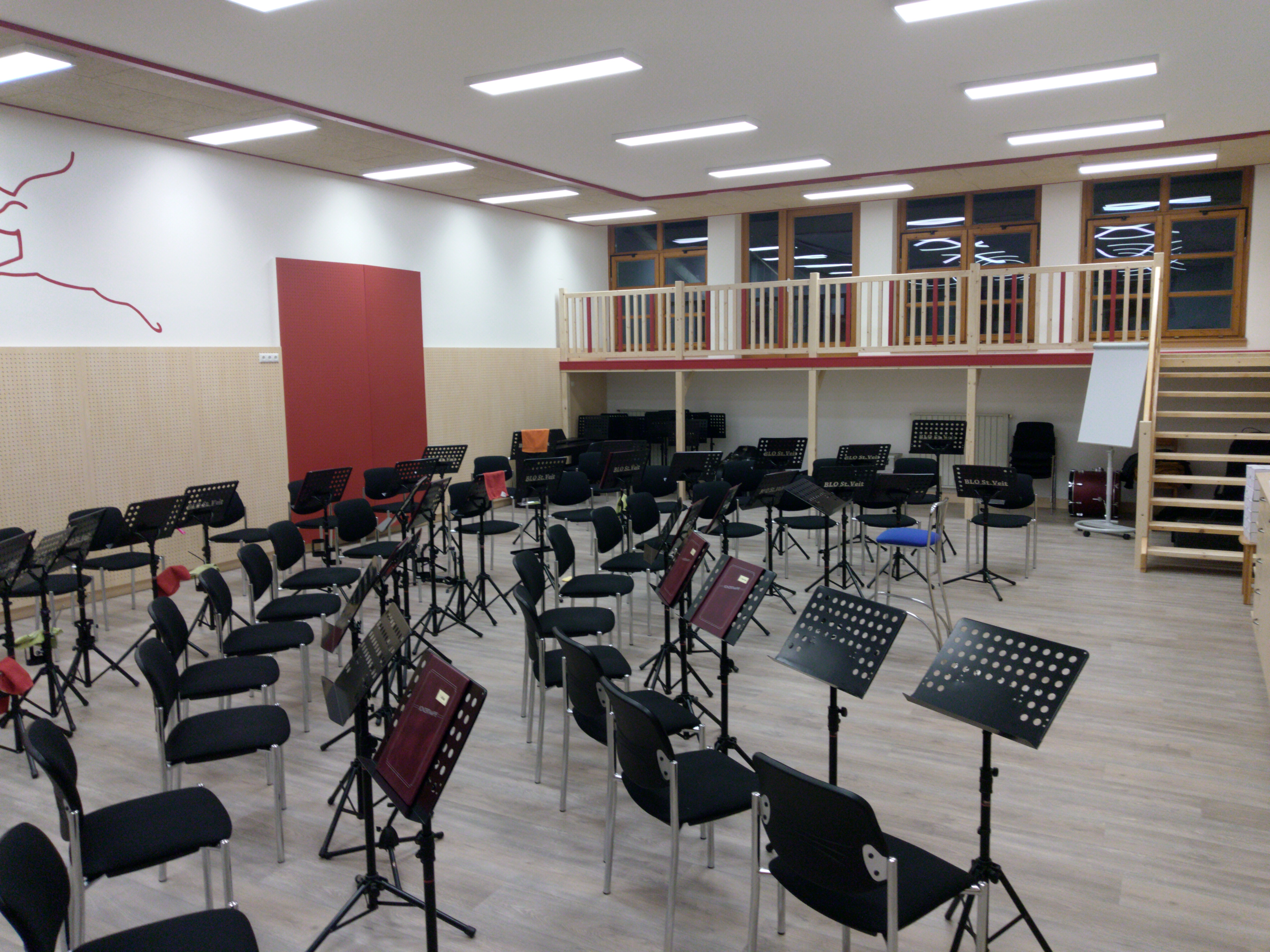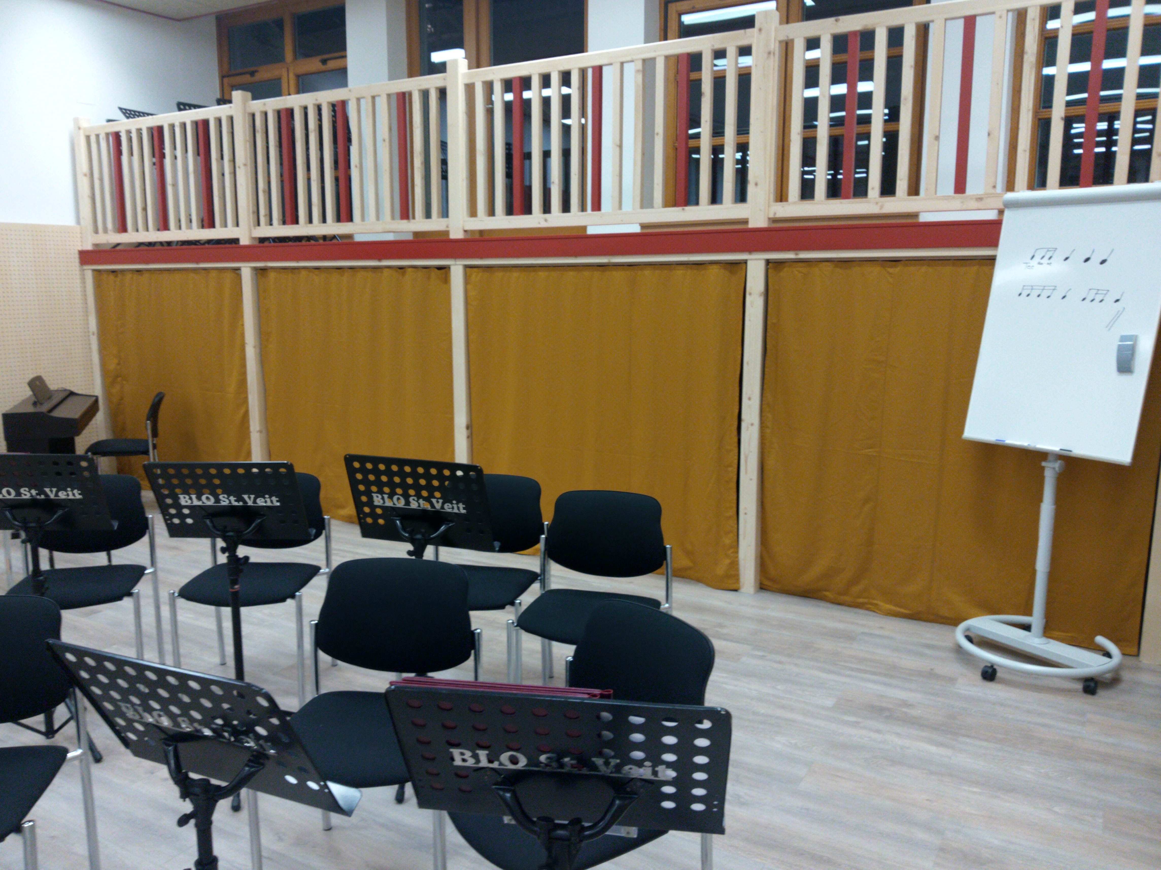 großen Proberaum , welcher eine Höhe von rund 4 Meter hat, wurde ein Wasserpegel von ca. 2,5 Meter